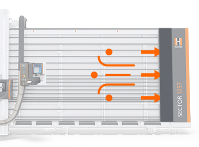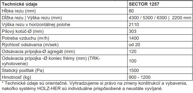 SECTOR 1257 je k dispozícii v širokej škále variantov rámu s dĺžkami rezu od 4300 mm do 6300 mm a výškou rezu 2200 mm. Hĺbka rezu je 80 mm. Špeciálne dĺžky až do 8300 mm sú možné na požiadanie.