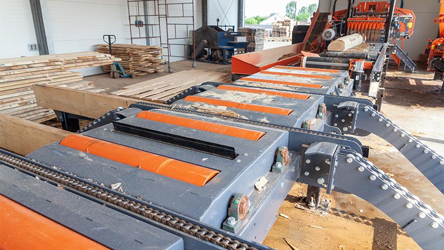 Za pilou je modulární třídící stůl pro automatizovaný příjem materiálu a jeho směrování k dalšímu zpracování. Jednotlivé moduly (každý 3 m dlouhý) lze spojovat do skupin maximální délky 9 m (celkem 3 moduly). Tyto skupiny lze násobit k vybudování třídících skládek. „V Nowakowského firmě jsou třídící stoly elektrické s příčnými řetězy a posunovači. Stůl může být volitelně vybaven řetězy aktivovanými pneumaticky nebo hydraulicky. To je doporučené řešení pro linky, u kterých je materiál odebírán ze dvou nebo více pil pracujících vedle sebe,” vysvětluje Adam Kubiak.
