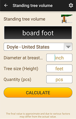 Ielādējiet mūsu mobīlo aplikāciju ar kokapstrādes kalkulātoriem jūsu telefonā.